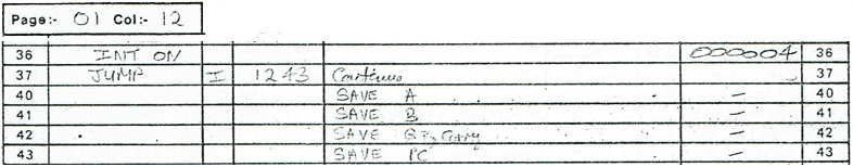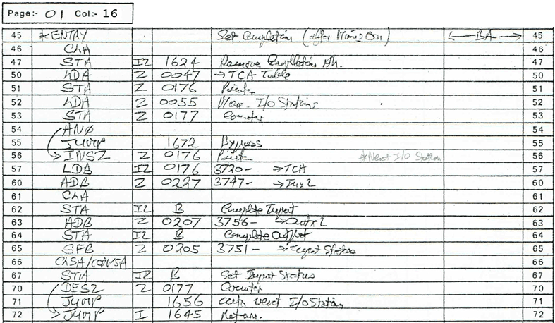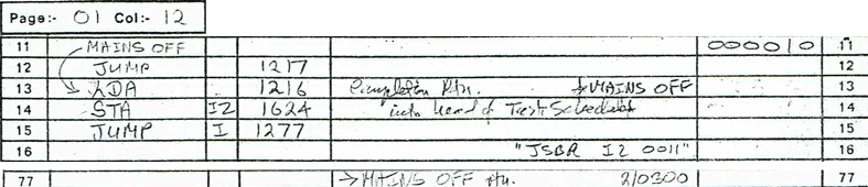 | 4 | MAINS ON | Immediately dismissed by LOS, i.e. JUMP IZ 0010 (disregarding the kludge at 01/1246) | 01/1244 |